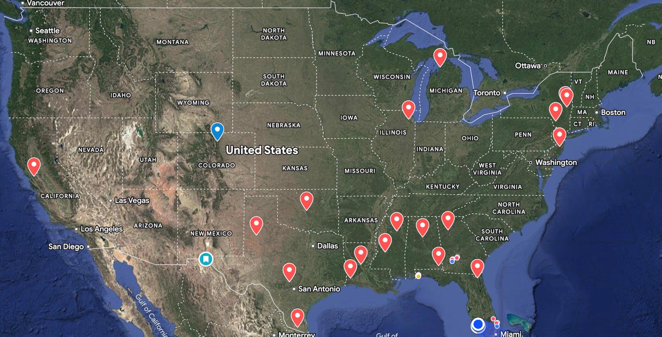 After graduating from Twin Lakes High, I travelled with Major Thomas throughout the US. This image depicts the locations where he held Bible weeks. These weeks always started on Sunday with nightly services. Interestingly, Major never did an alter call until the last night because he wanted people to fully understand what they were doing. On Thursday nights he did a slide show about the origin and people of Torchbearers.