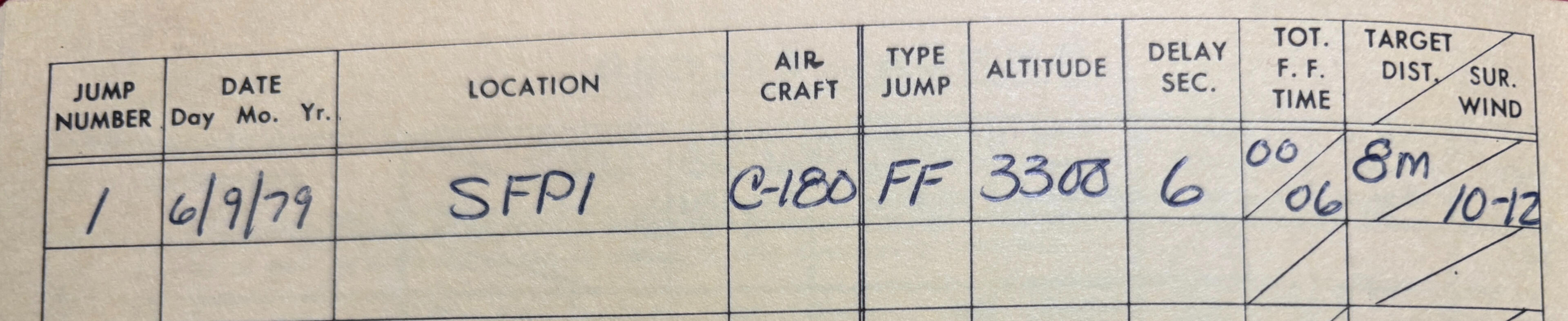 After learning to fly my next adventure was skydiving. In a small town west of West Palm there was a dive school that only did free-fall jumps first time, every time.I was so nervous, sweat was pooling in my palms and I remember thinking as I lunged from the plane's cabin to grab the wing strut that I was going to slip off the strut and that would be the end of it.