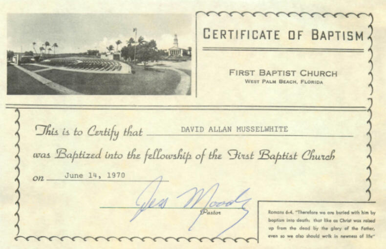 I grew up Southern Baptist and attended First Baptist Church from childhood until I left West Palm.