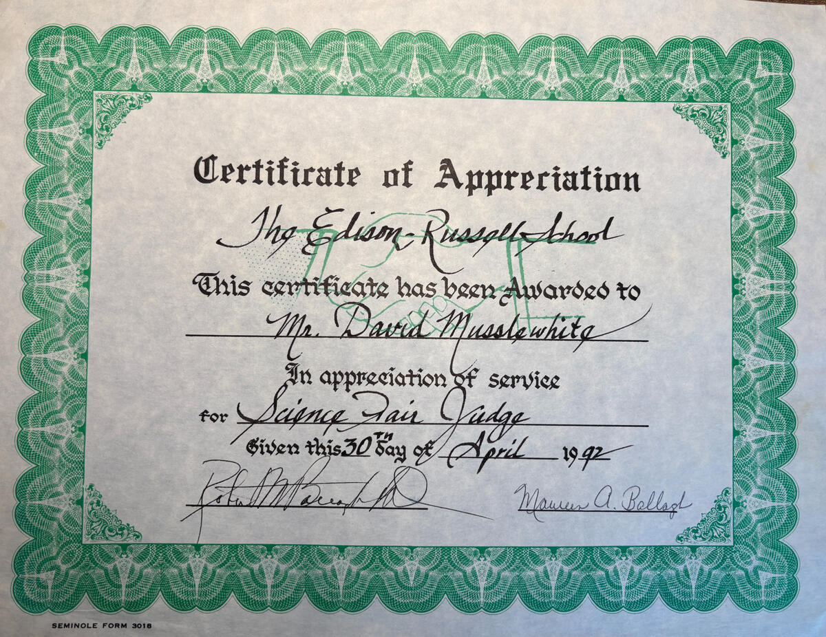 in 1992, one of the partners in the consulting company asked me to judge a science fair at a private school in North Palm Beach.