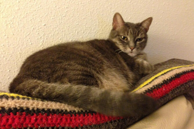 I got home one afternoon and waiting on the stairs to my apartment was a very small kitten that followed me into my apartment. She was so sweet I just had to adopt her and named her Pepper. We stayed together for many, many years.