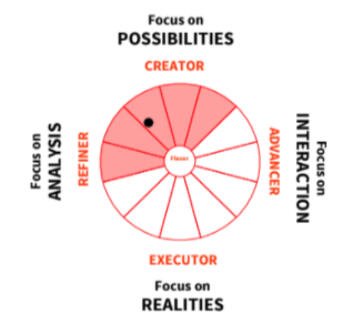 As part of the LEAP program, each participant was required to take a Team Dynamic profile. My profile showed I was a Creator/Refiner with a focus on future possibilities and analytics. Somewhat like my dad was fond of saying "The problem with us meta-physicians is our inability to tangibilitate (do anything at all)"