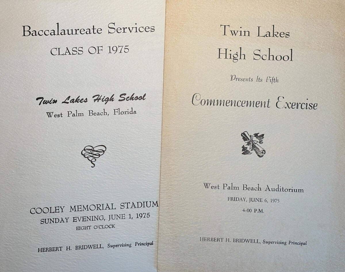 I graduated from Twin Lakes High School in 1975. Here I am sitting at home while my mom took my pic in my cap and gown.Because I left school a week before the rules allowed (to travel to Europe - the principal Herbert Bridwell directed all of my teachers to fail me for the second semester of my junior year.In order to graduate with my class I had to take a full load of classes and several night school classes.